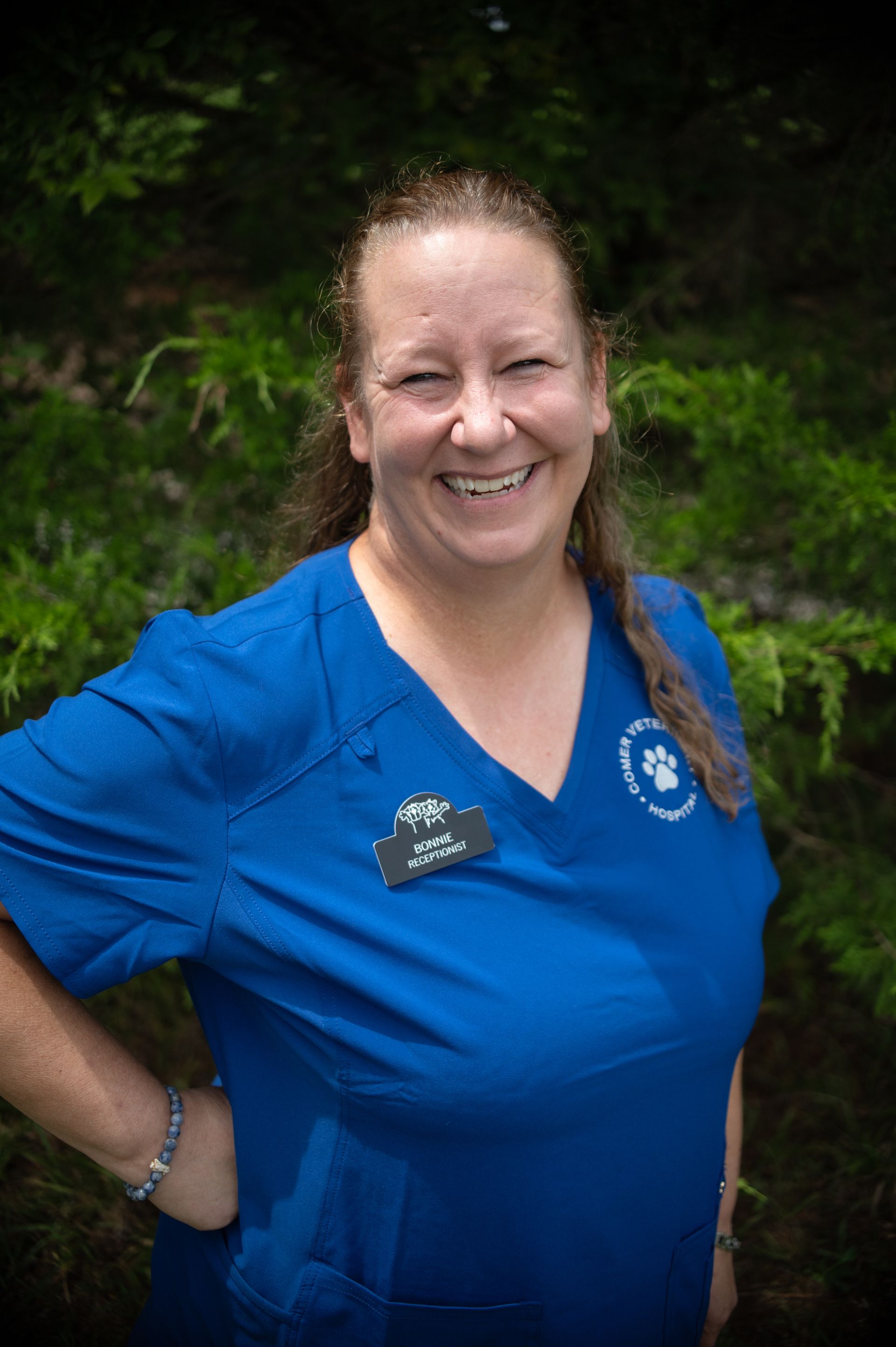 ![]() | Bonnie might be a horse girl at heart, but we love having her as one of the bright smiles to welcome y’all into the clinic as part of our reception team! She loves taking our motto, “Care with Community in Mind”, to heart by ensuring pet owners are able to be with their pets in exam rooms during appointments. This lets them have one-on-one time with their veterinarian and support staff to best serve their pets’ needs and have questions answered on the spot. Her most memorable day in the clinic happened when she got to help revive puppies following a C-section delivery! |