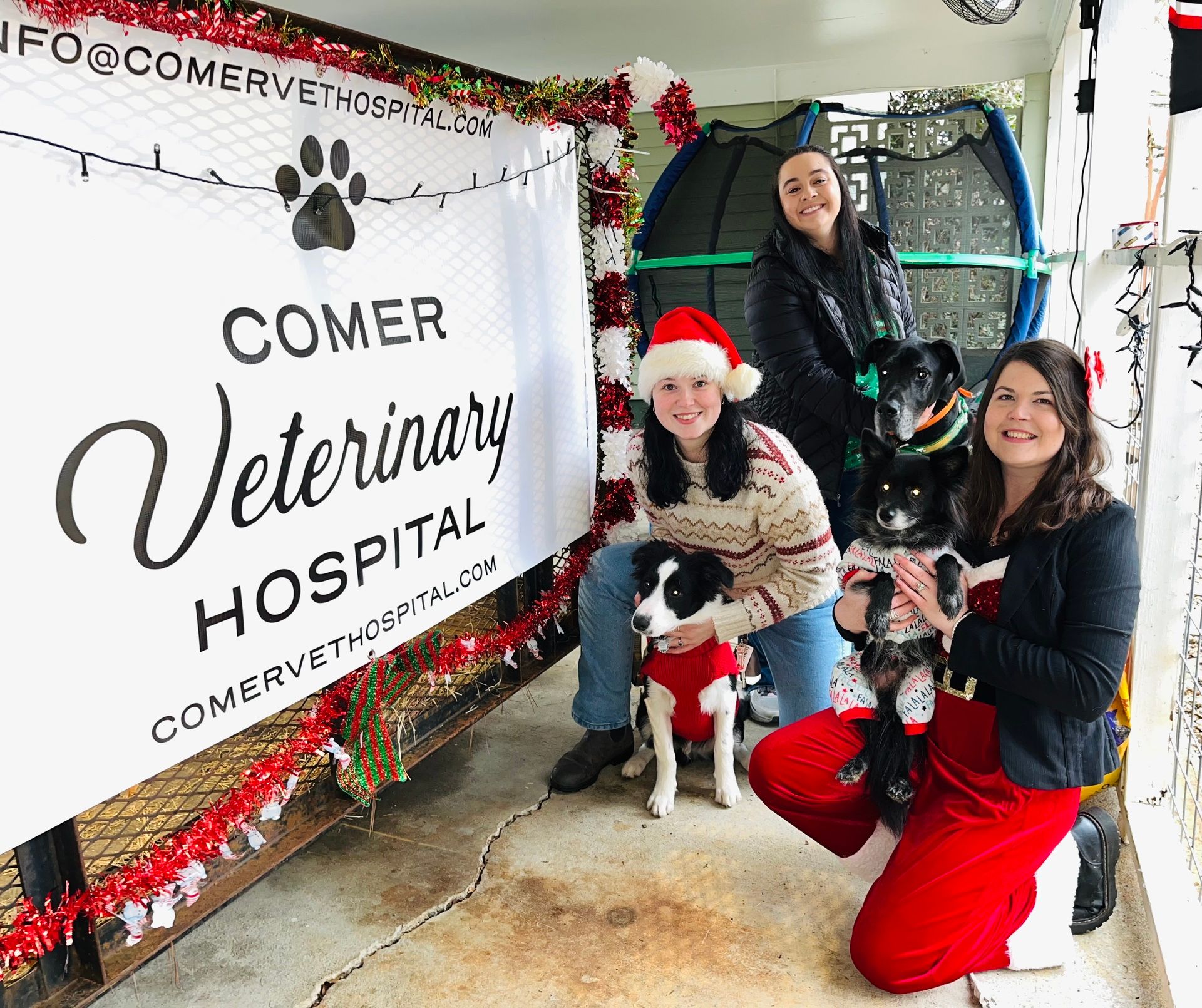 We had a great weekend welcoming Santa Paws to town on Friday night, Dec. 5. Fifty pets came through the clinic, and our friends at Maggie’s Café in Comer catered cookies and hot chocolate. Saturday dawned with a very chilly but spirited city Christmas parade. We had a trailer full of staff, family members, and furry friends waving and handing out candy! The weekend concluded with our joint holiday party alongside the team from our sister clinic, Custom Livestock Solutions. We’re so grateful that R.G. Strickland Mercantile let us reserve their space for our annual dinner and gift exchange this year. Want to see all the photos from Santa’s visit to the clinic? Find them here on Facebook!